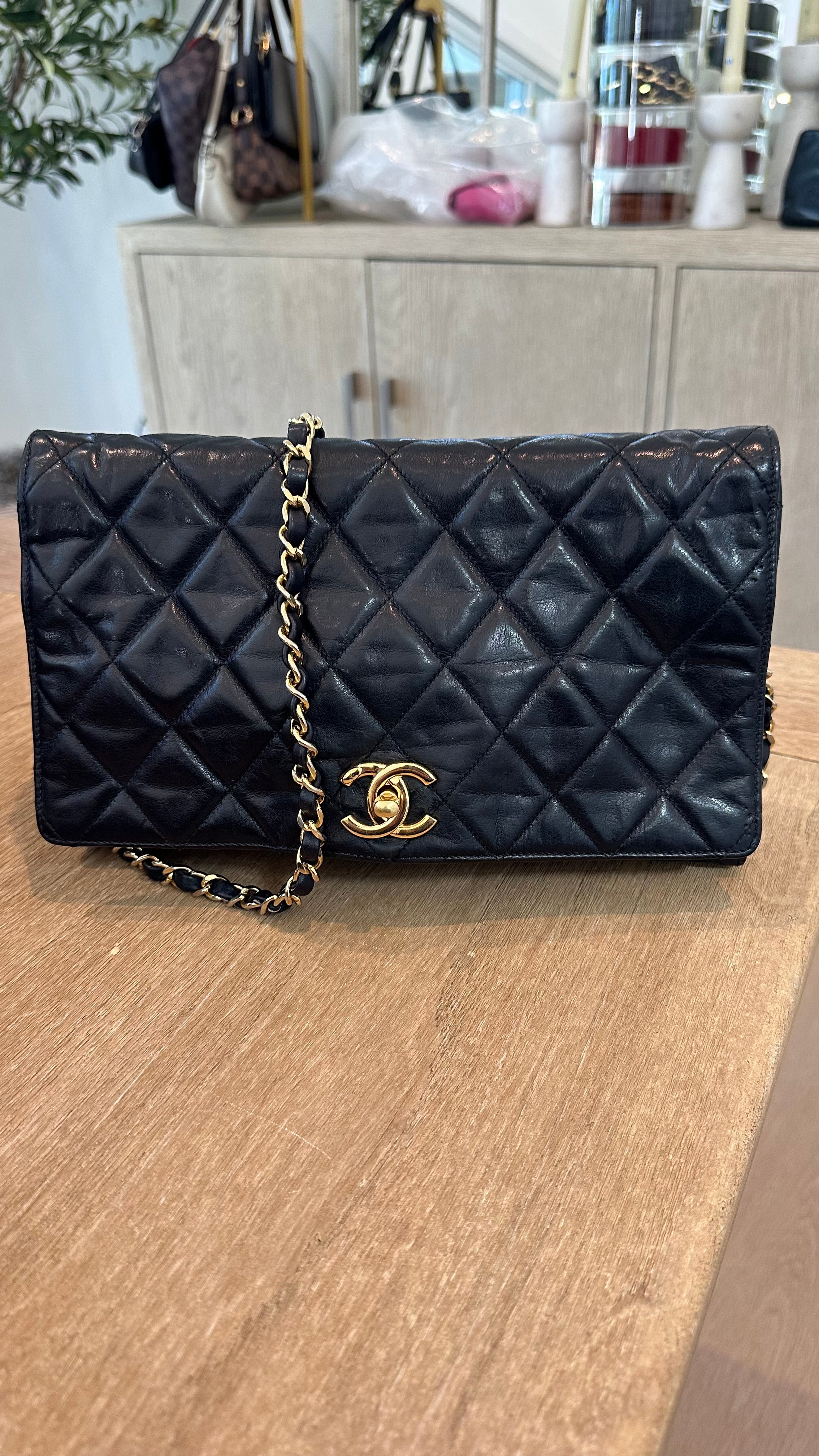 Sold!! Chanel black quilted calfskin flap turnlock bag
